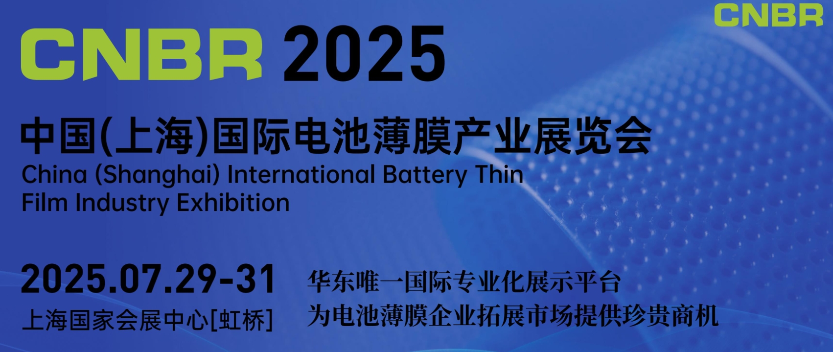 2025中国(上海)国际电池薄膜产业展览会将于2025年7月29-31日在国家会展中心(上海)举行。届时邀请政府、专家学者、企业高管、协会领导等一道解析行业发展形势,或掘新动能,探寻发展思路,共同打造“创新、合作、发展、共赢”的全球电池薄膜产业盛会。