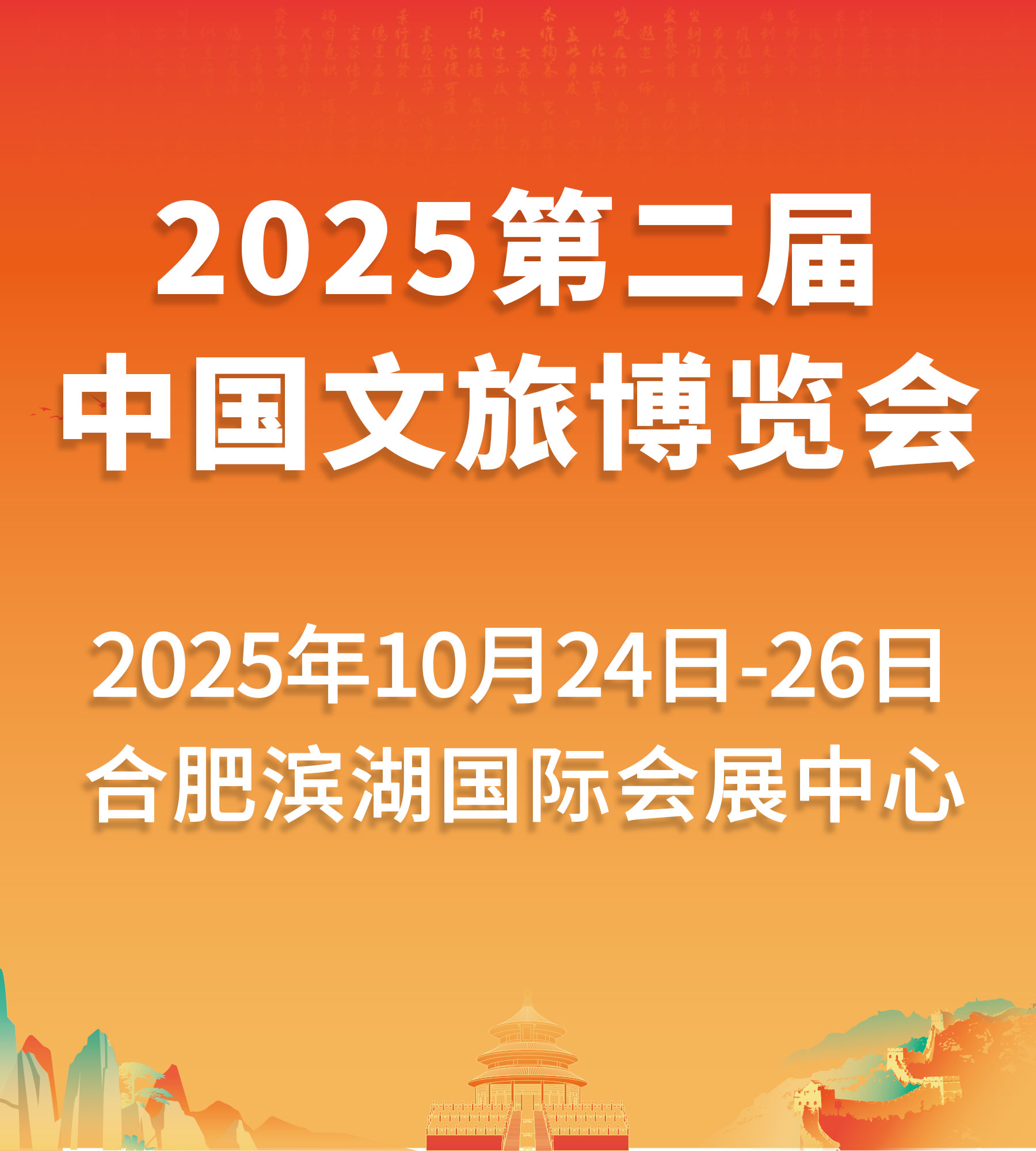 文旅业是一个综合性产业,关联度强、带动作用大。蓬勃发展的文旅业既能丰富群众生活,又可广泛串联起吃、住、行、游、购、娱各方面,并与体育、科技、商业、农业等其他行业融合联动,发挥出“一业兴、百业旺”的乘数效应,体现出作为幸福产业、民生产业的积极作用。 在此机遇下,第二届中国文旅博览会焕新出发,定档2025年10月24-26日,将于合肥滨湖国际会展中心举办,带来一场产业创新与智慧交织的盛宴,助力文旅产业融合发展并迸发更大活力。